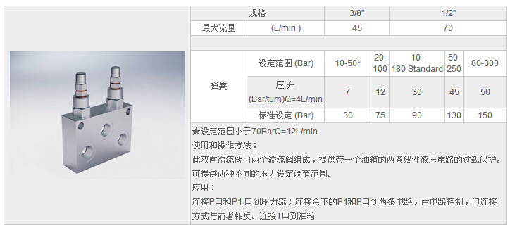 詳細信息 HYVMPD 3/8",HYVMPD 1/2”,雙向溢流閥