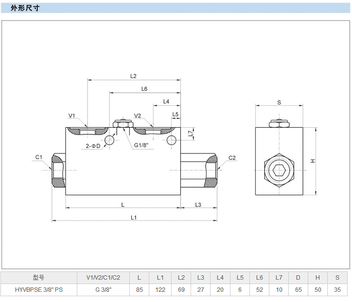 詳細(xì)信息 HYVBPSE 3/8" PS,外單先導(dǎo)式單向閥