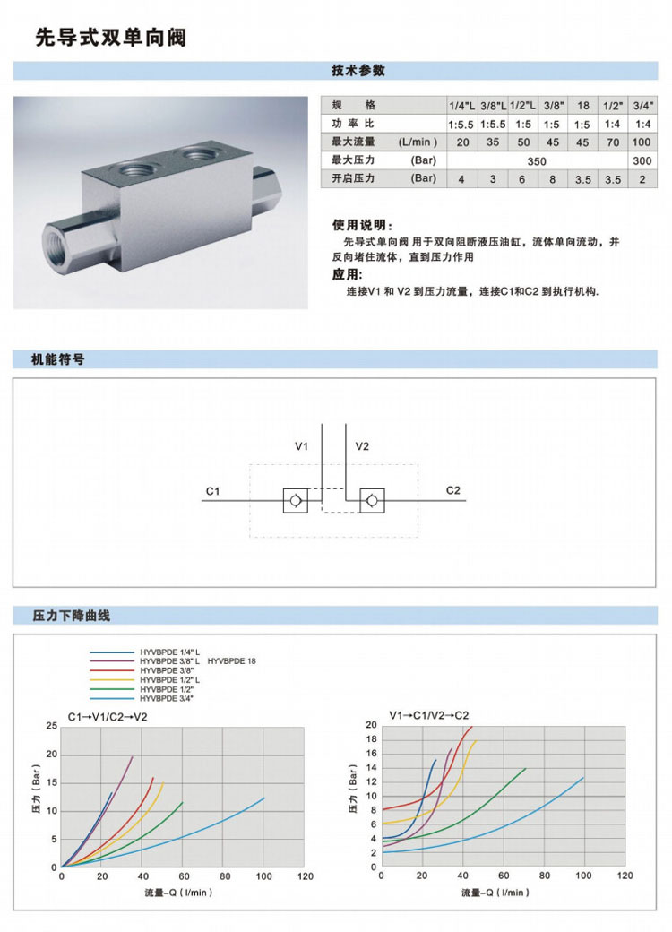 詳細(xì)信息 HYVBPDE 1/4" L,HYVBPDE 3/8" L,HYVBPDE 1/2" L,HYVBPDE 3/8",HYVBPDE 18,HYVBPDE 1/2",HYVBPDE 3/4",先導(dǎo)式雙單向閥