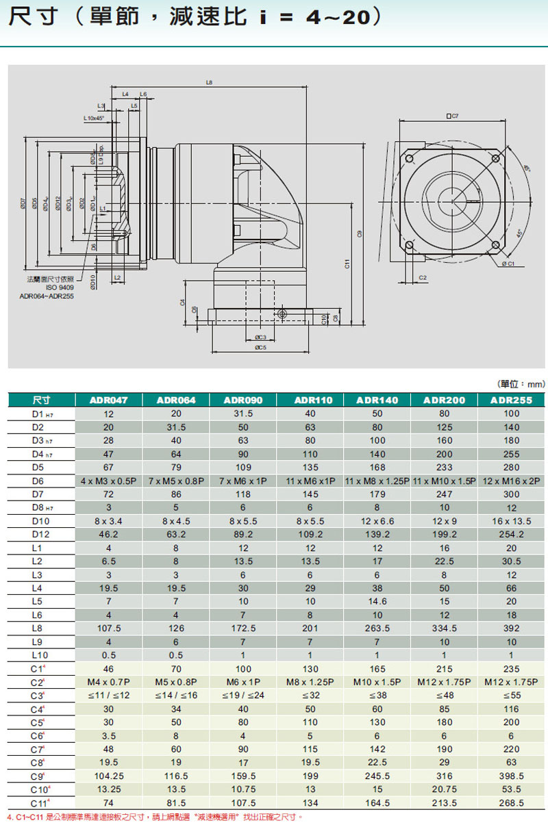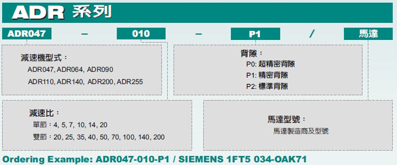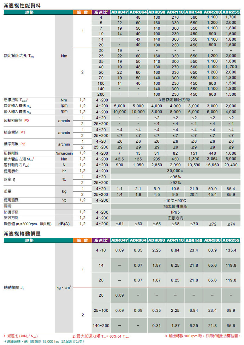 ADR047,ADR064,ADR090,ADR110,ADR140,ADR200,ADR255,伺服專用減速機