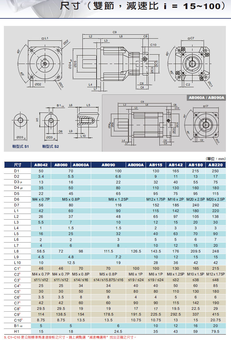 AB042,AB060,AB060A,AB090 ,AB090A,AB115,AB142,AB180,AB220,伺服專用減速機