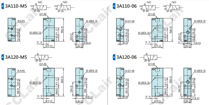 3A110-M5-DC23A,3A120-M5-DC23A,3A130C-M5-DC23A,3A130E-M5-DC23A,3A130P-M5-DC23A,二位三通氣控閥
