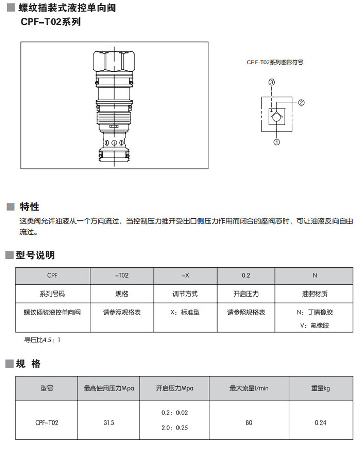 CPF-T02-X0.2N,CPF-T02-X0.2V,CPF-T02-X2.0N,CPF-T02-X2.0V,螺紋插裝式液控單向閥 詳細(xì)信息 CPF-T02-X0.2N,CPF-T02-X0.2V,CPF-T02-X2.0N,CPF-T02-X2.0V,螺紋插裝式液控單向閥