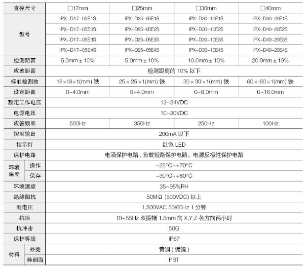 IPX-2D25-05A1S,IPX-2D30-10A1S,IPX-2D40-20A1S,IPX-A25-05A1S,IPX-A30-10A1S,IPX-A40-20A1S,Koino方形接近開關(guān)