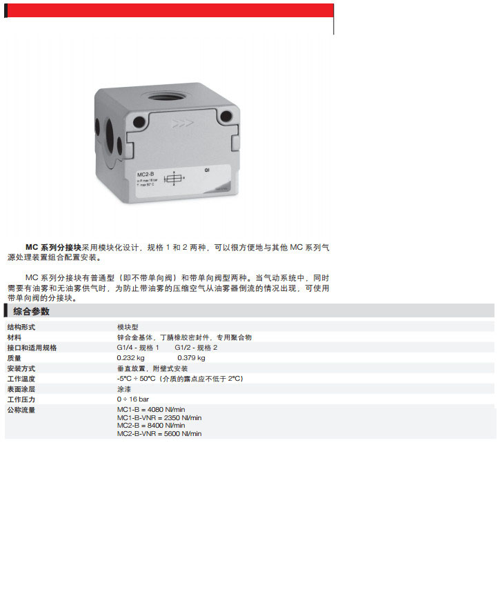 MC1-B-VNR,MC2-B-VNR,camozzi分氣塊