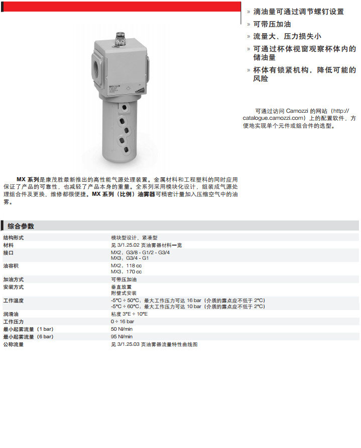 詳細(xì)信息 MX2-3/8-L00,MX2-1/2-L00,MX2-3/4-L00,MX3-3/4-L00,MX3-1-L00,camozzi油霧器