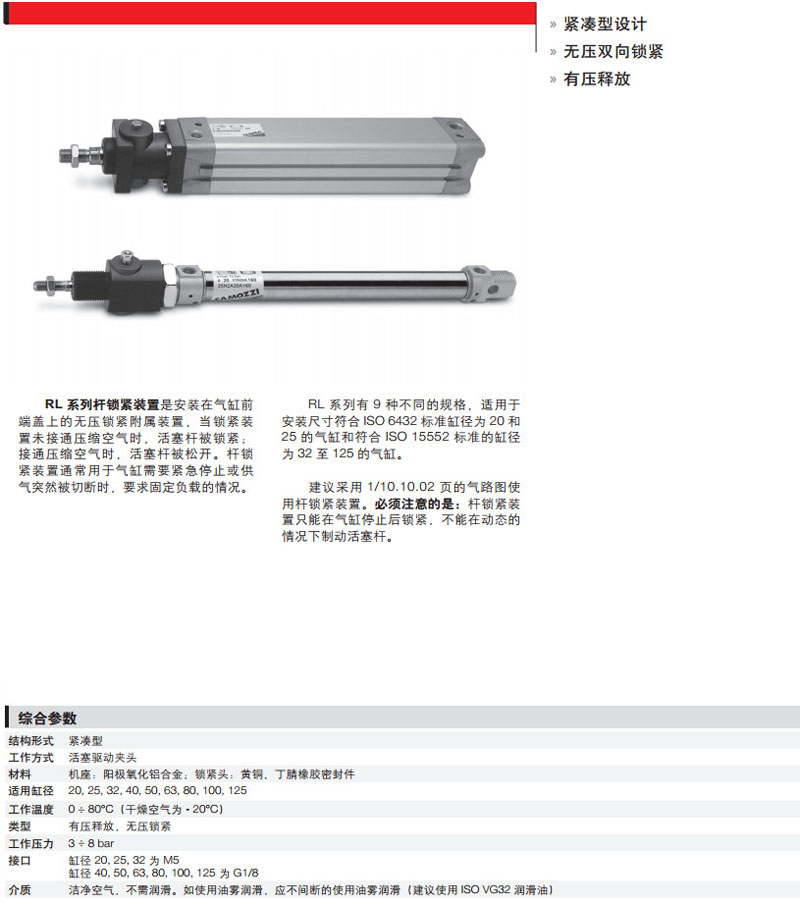 詳細(xì)信息 RLC-24-20,RLC-41-25,RLB-24-32,RLB-41-40,RLC-24-50,RLC-41-63,camozzi桿鎖緊裝置