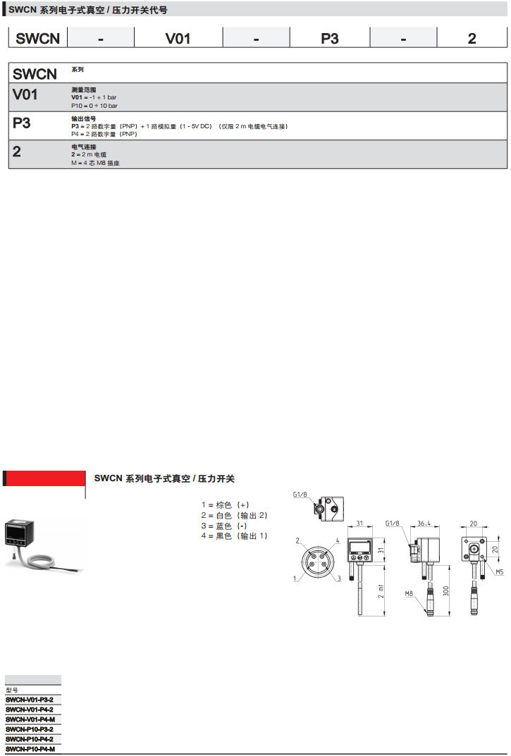 詳細(xì)信息 SWCN-V01-P3-2,SWCN-V01-P3-M,SWCN-P10-P4-2,SWCN-P10-P4-M,camozzi壓力開關(guān)