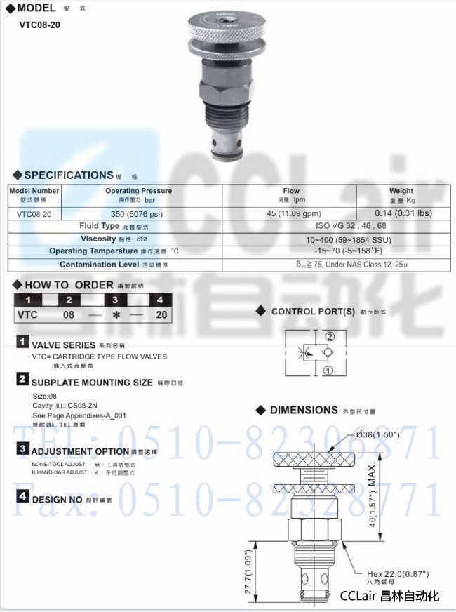 產(chǎn)品: 瀏覽次數(shù):763VTC-08-20,插入式流量閥,