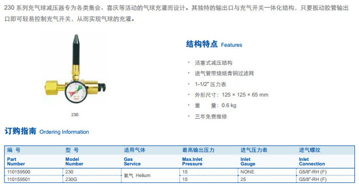 230,230G,充氣球減壓器