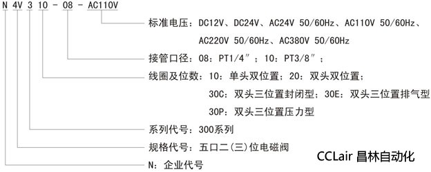 N4V300系列電磁閥適用于工作溫度-5℃~60℃,電源電壓為DC12V~24V、AC24V~380V、50~60Hz、介