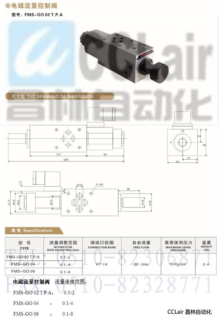 FMS-GO 02 T.P.A,F(xiàn)MS-GO 04,F(xiàn)MS-GO 06,電磁流量控制閥