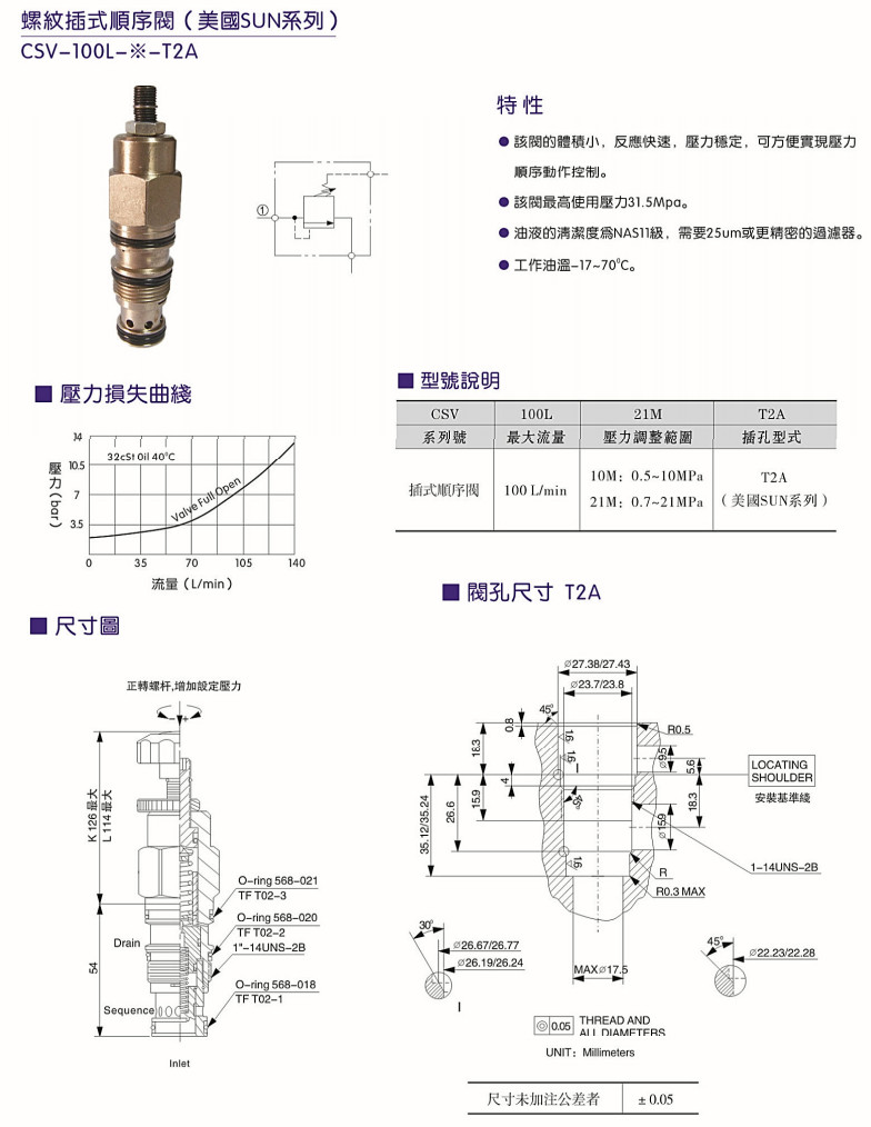 CSV-100L-10M-T2A,CSV-100L-21M-T2A,螺紋插式順序閥