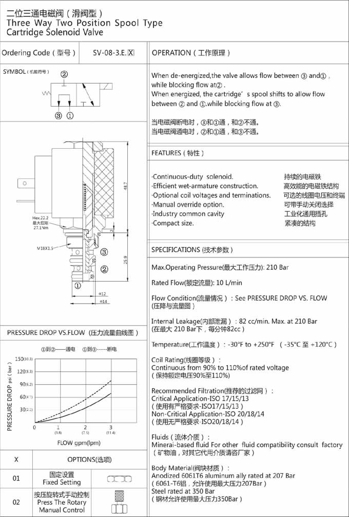 產(chǎn)品: 瀏覽次數(shù):394SV-08-3E,二位三通電磁閥
