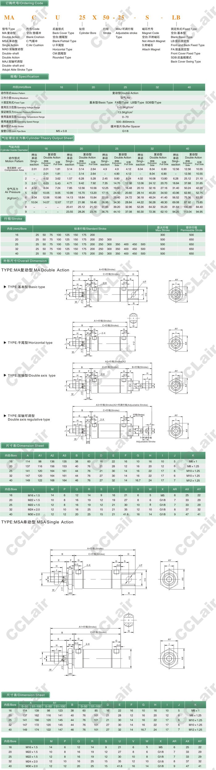MA-CM20×125,MA-CM20×150,MA-CM20×175,MA-CM20×200,MA-CM20×250,MA-CM20×300,MA-CM25×25,MA-CM25×50,