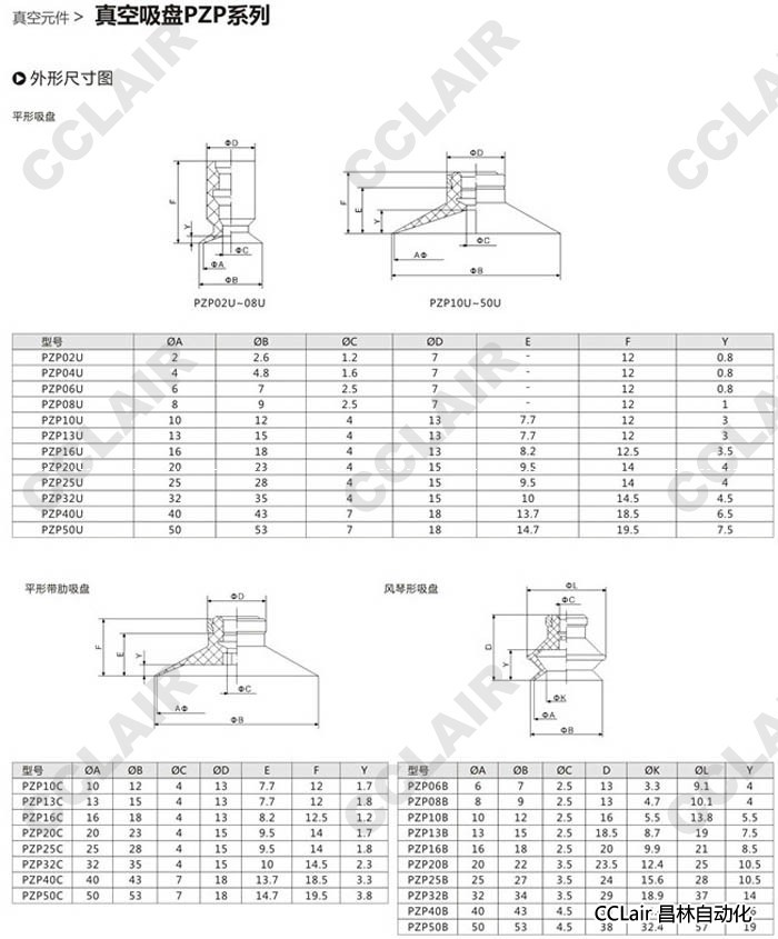 PZP02U,PZP04U,PZP06U,PZP08U,PZP10U,PZP13U,PZP16U,PZP20U,PZP25U,真空吸盤