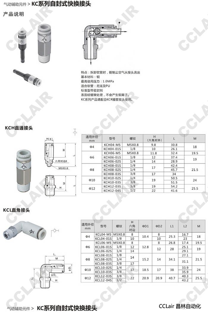KCH04,KCH06,KCH08,KCH10,KCH12,自封式快換接頭