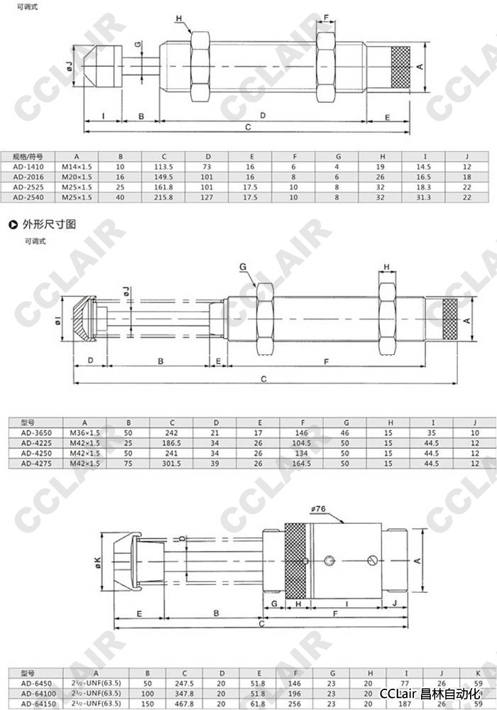 詳細(xì)信息 AD-1410,AD-2016,AD-2525,AD-2540,AD-3650,AD-4225,AD-4250,AD-4275,油壓緩沖器