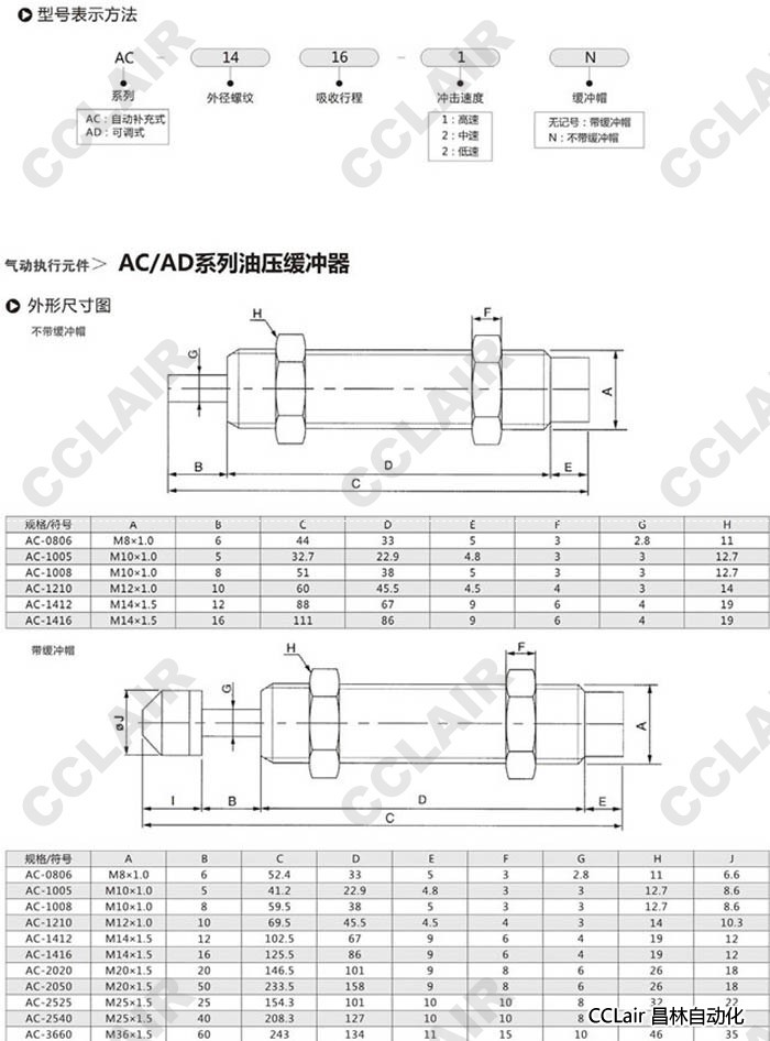 AC-0806,AC-1005,AC-1008,AC-1210,AC-1412,AC-1416,AC-2020,AC3660,油壓緩沖器
