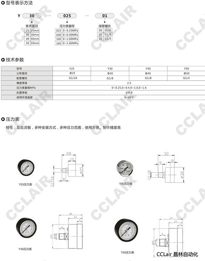 詳細信息 Y25-025,Y30-025,Y40-025,Y50-025,Y25-040,Y30-040,Y40-040,Y50-040,減壓閥用壓力表