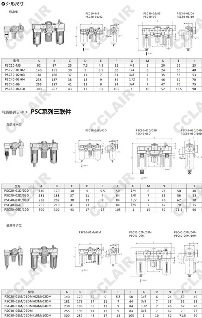 PSC50-MS,PSC50-01,PSC50-02,PSC50-03,PSC50-04,PSC50-06,PSC50-10,氣動三聯(lián)件
