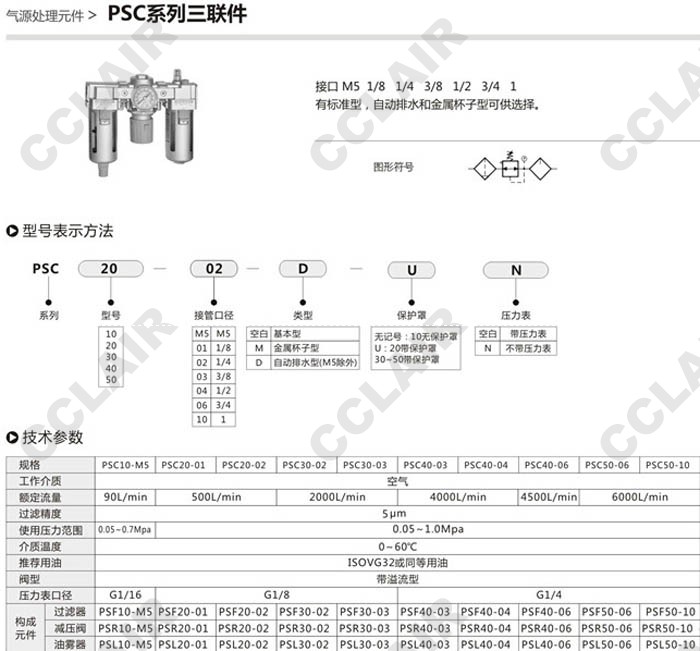 詳細信息 PSC40-MS,PSC40-01,PSC40-02,PSC40-03,PSC40-04,PSC40-06,PSC40-10,氣動三聯件
