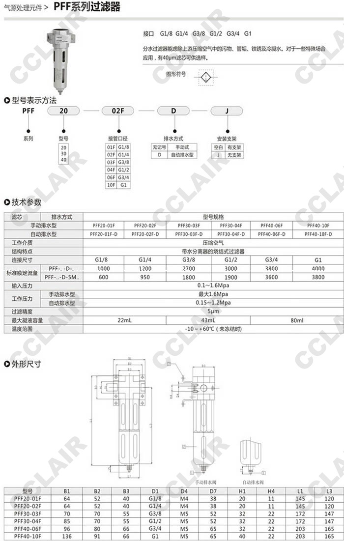 詳細信息 PFF30-01F,PFF30-02F,PFF30-03F,PFF30-04F,PFF30-06F,PFF30-10F,氣動過濾器