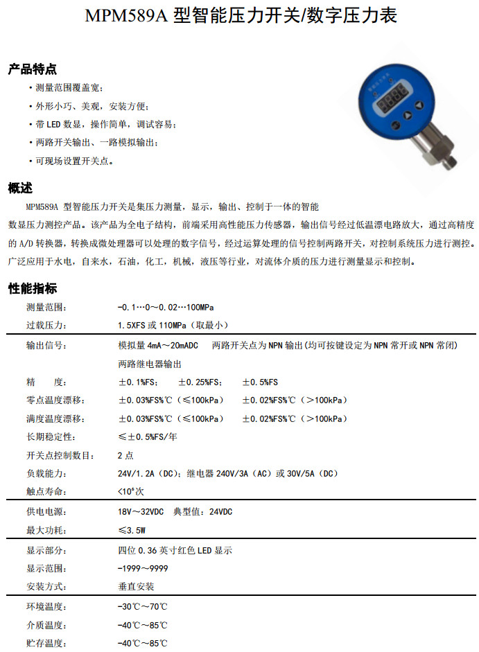 您當(dāng)前的位置:首頁(yè) » 產(chǎn)品&解決方案 » MPM589A-0.1,MPM589A-0,MPM589A-0.01,MPM589A-100,智能壓力開關(guān)