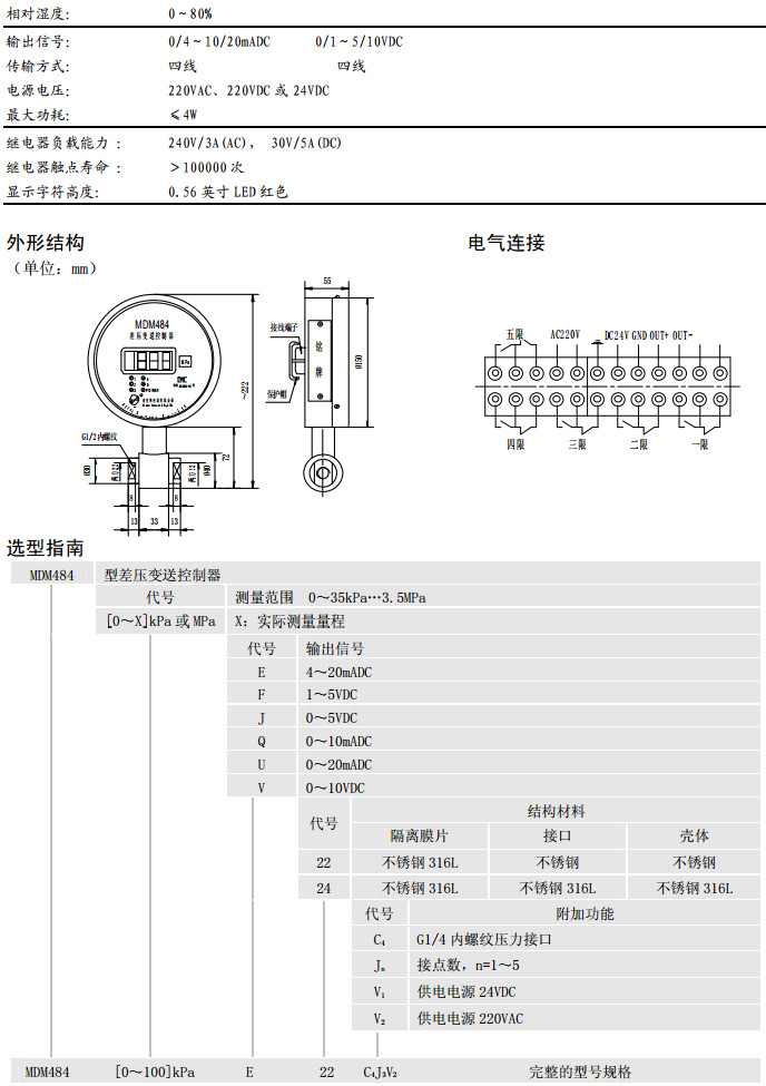 MDM484-0E,MDM484-35F,MDM484-0J,MDM484-35Q,MDM484-0U,MDM484-35V,差壓變送控制器