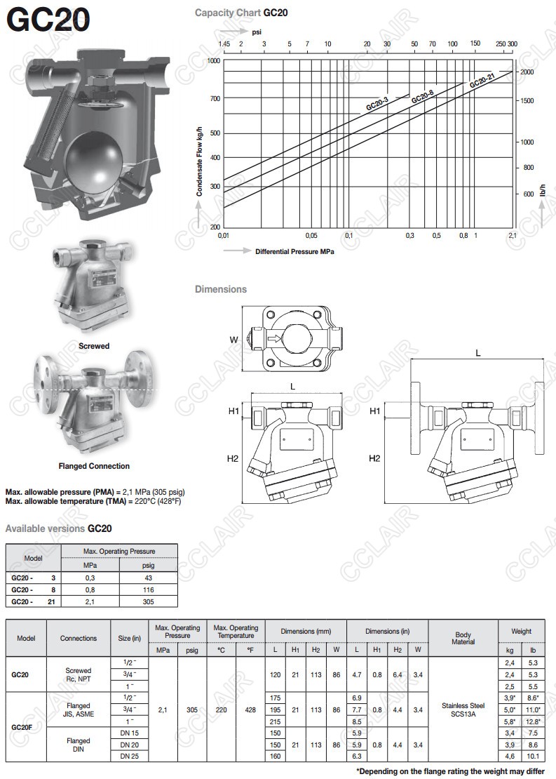 詳細(xì)信息 GC20,GC20F,miyawaki浮球式蒸汽疏水閥