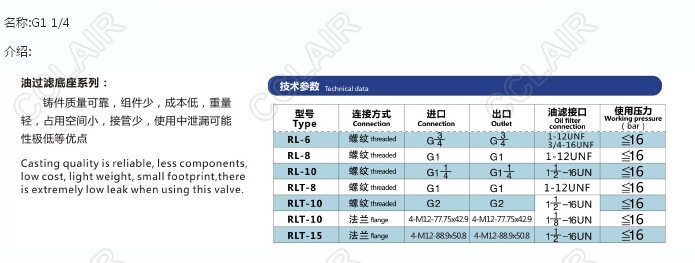 詳細(xì)信息 RL-6,RL-8,RL-10,RLT-8,RLT-10,RLT-15,G1 1/4,油慮座