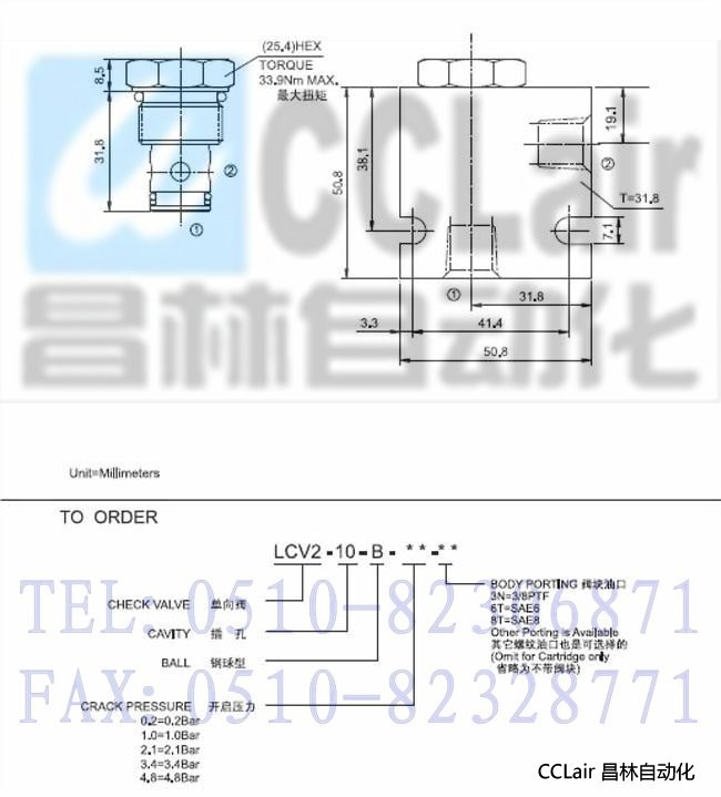 » LCV2-10-B-3.4,LCV2-10-B-4.8,鋼球型單向閥