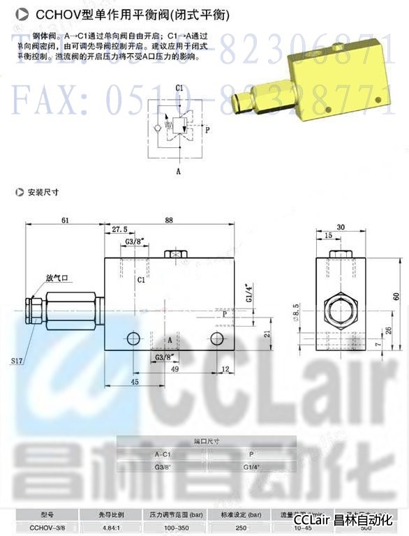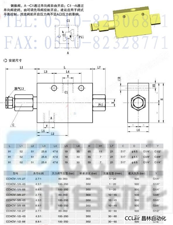詳細信息 CCHOV-3/8,CCHOV-1/2,單作用平衡閥(閉式平衡)