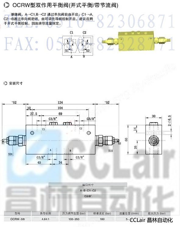 產品: 瀏覽次數:803OCRW-3/8,OCRW-1/2,雙作用平衡閥(開式平衡/帶節(jié)流閥)