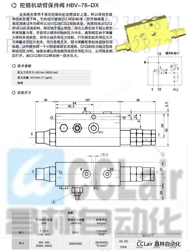 HBV-78-DX,挖掘機動臂保持閥