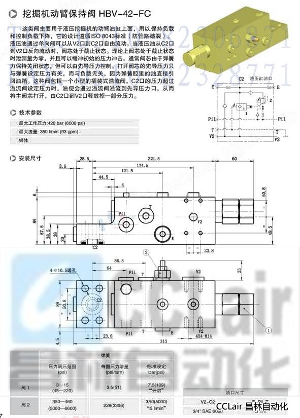 產(chǎn)品: 瀏覽次數(shù):533HBV-42-FC,挖掘機動臂保持閥