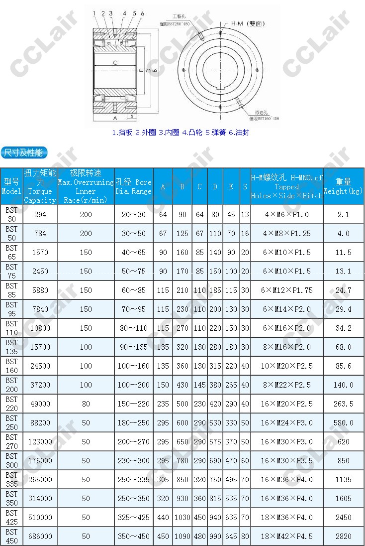 詳細信息 BST30,BST50,BST65,BST75,BST85,BST95,BST110,BST135,BST160,BST200,BST350,BST425,BST450,凸輪離合器