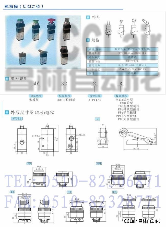 詳細(xì)信息 MV322PP,MV322PPL,MV322PB,機(jī)械閥