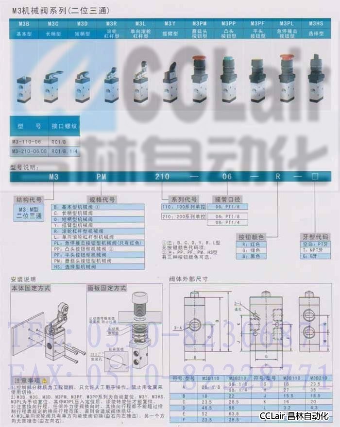 詳細信息 M3L210-06,M3PL210-06,M3PP210-06,M3PF210-06,M3PM210-06,二位三通機械閥