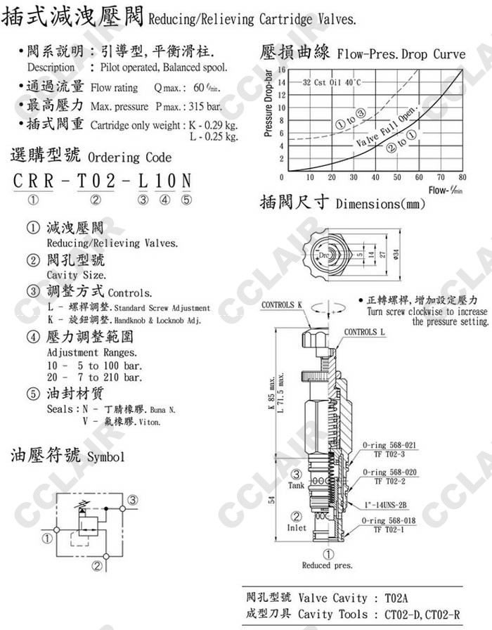 CRR-T02-L10N,CRR-T02-K10N,CRR-T02-L20N,CRR-T02-K20N,CRR-T02-L10V,插式減泄壓閥