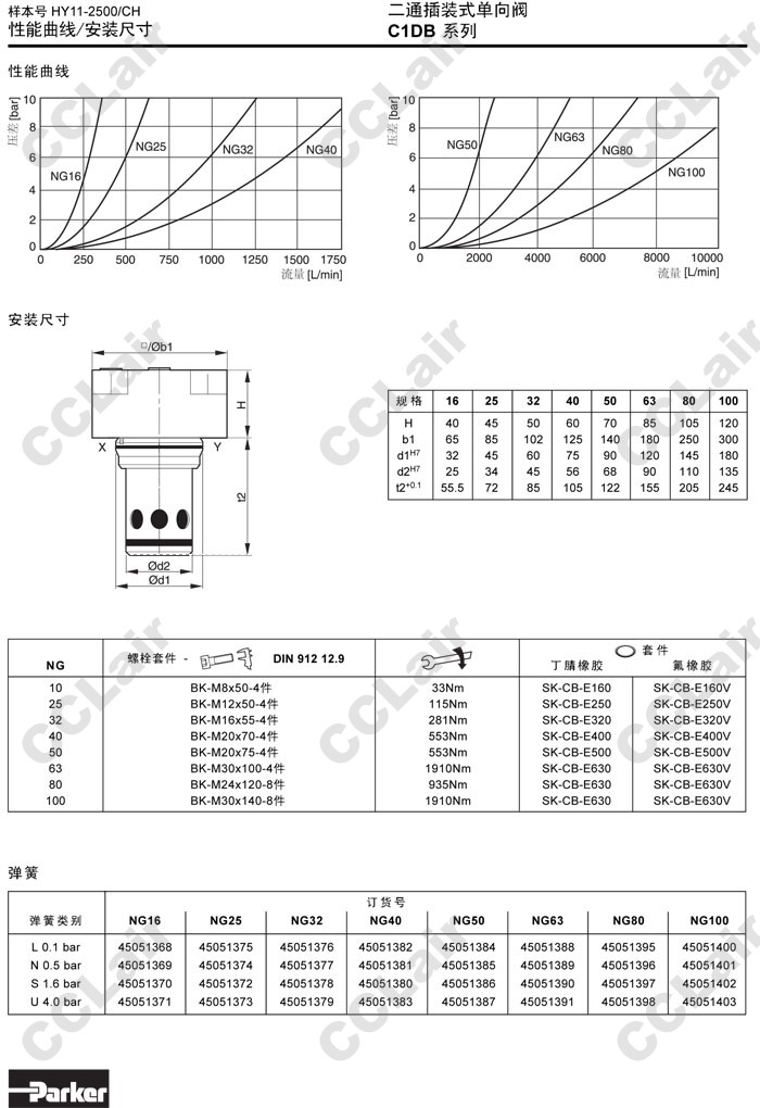 C1DB101E16,C1DB101E25,C1DB101E32,C1DB101E40,C1DB101E50,C1DB101E63,C1DB101E80,C1DB101E100,Parker二通插裝式