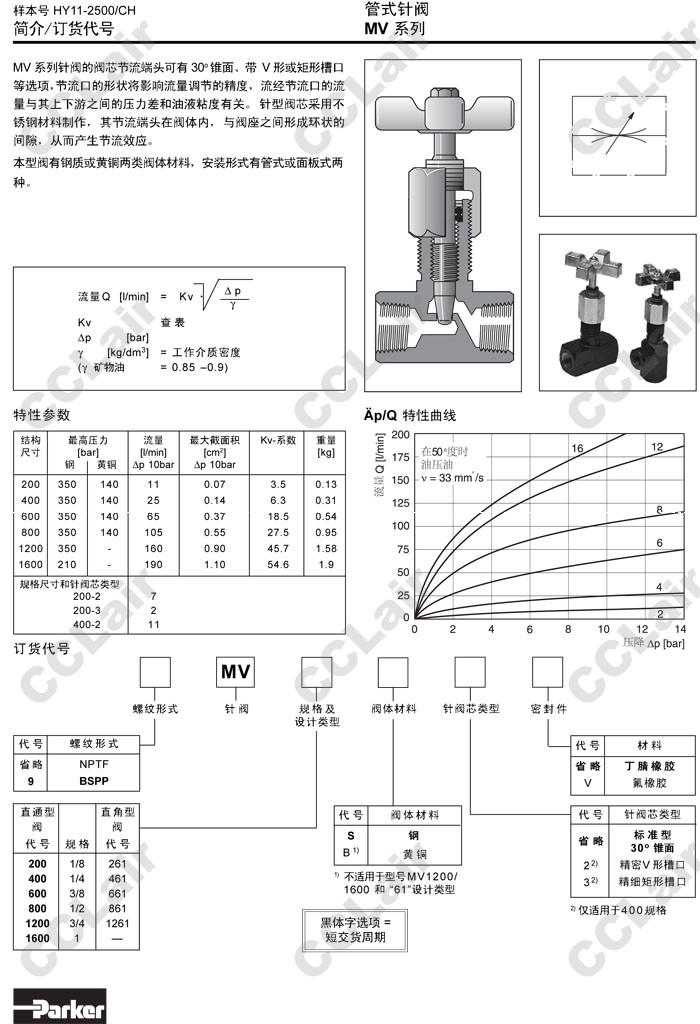 MV200,MV400,MV600,MV800,MV261,MV461,MV661,MV861,MV1261,MV200S,MV261S,Parker管式針閥