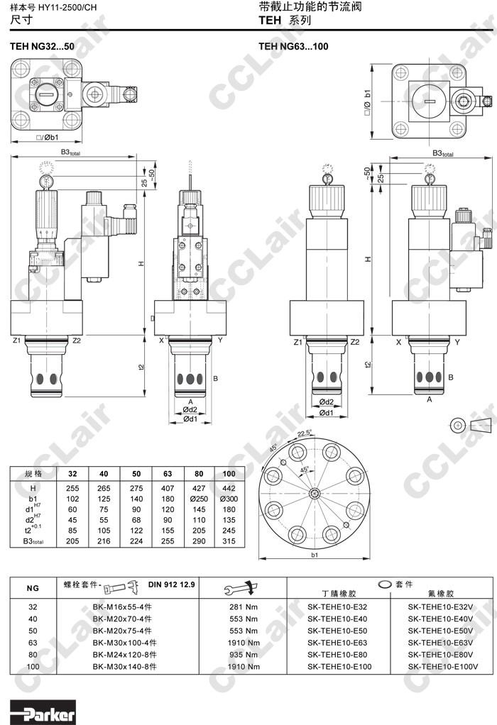 TEH032EL09A2NW,TEH040EL09A2NW,TEH050EL09A2NW,TEH063EL09A2NW,TEH080EL09A2NW,TEH100EL09A2NW,Parker節(jié)流閥