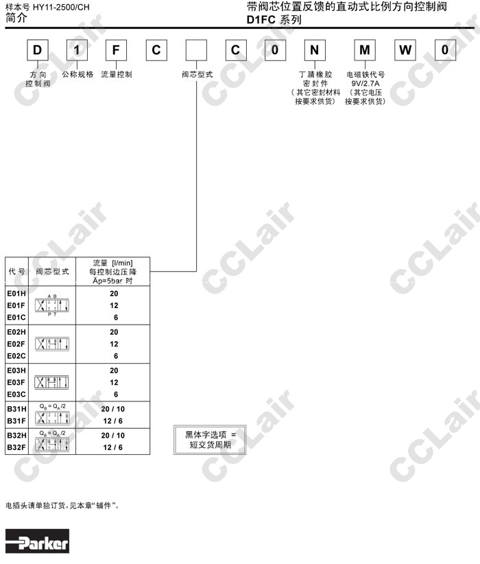 詳細信息 D1FCE01,D1FCE02,D1FCE03,D1FCB31,D1FCB32,D1FCE01HC0NMW0,D1FCE02HC0NMW0,Parker直動式比例方向控制閥