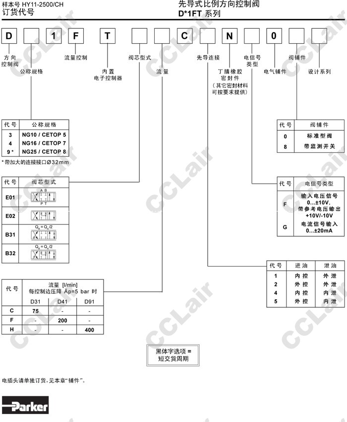 D31FTE,D41FTE,D91FTE,D31FTE01CC1NF00,D41FTE01FC1NF00,D91FTE01HC1NF00,Parker先導式比例方向控制閥