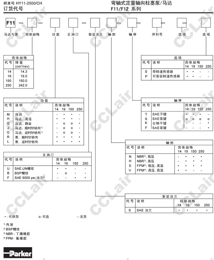 F11-005-R,F11-010-R,F11-014-R,F11-019-R,F11-150-R,F11-005-RB-CN-K,Parker彎軸式定量軸向柱塞馬達(dá)