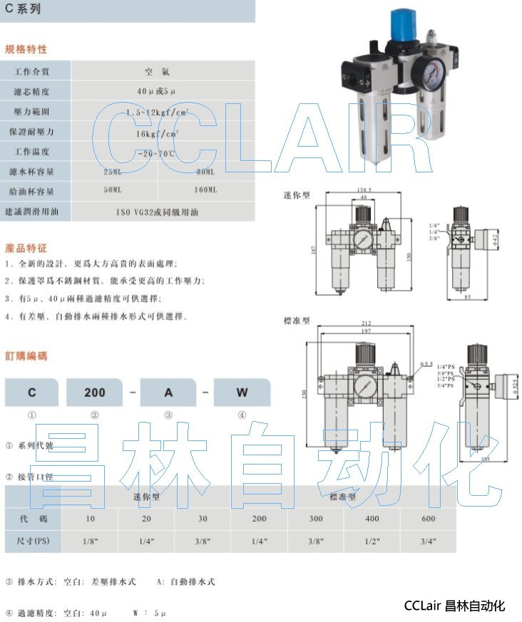 詳細信息 FC10-A-W,FC20-A-W,FC30-A-W,FC200-A-W,FC300-A-W,FC400-A-W,FC600-A-W,空氣調(diào)理組合