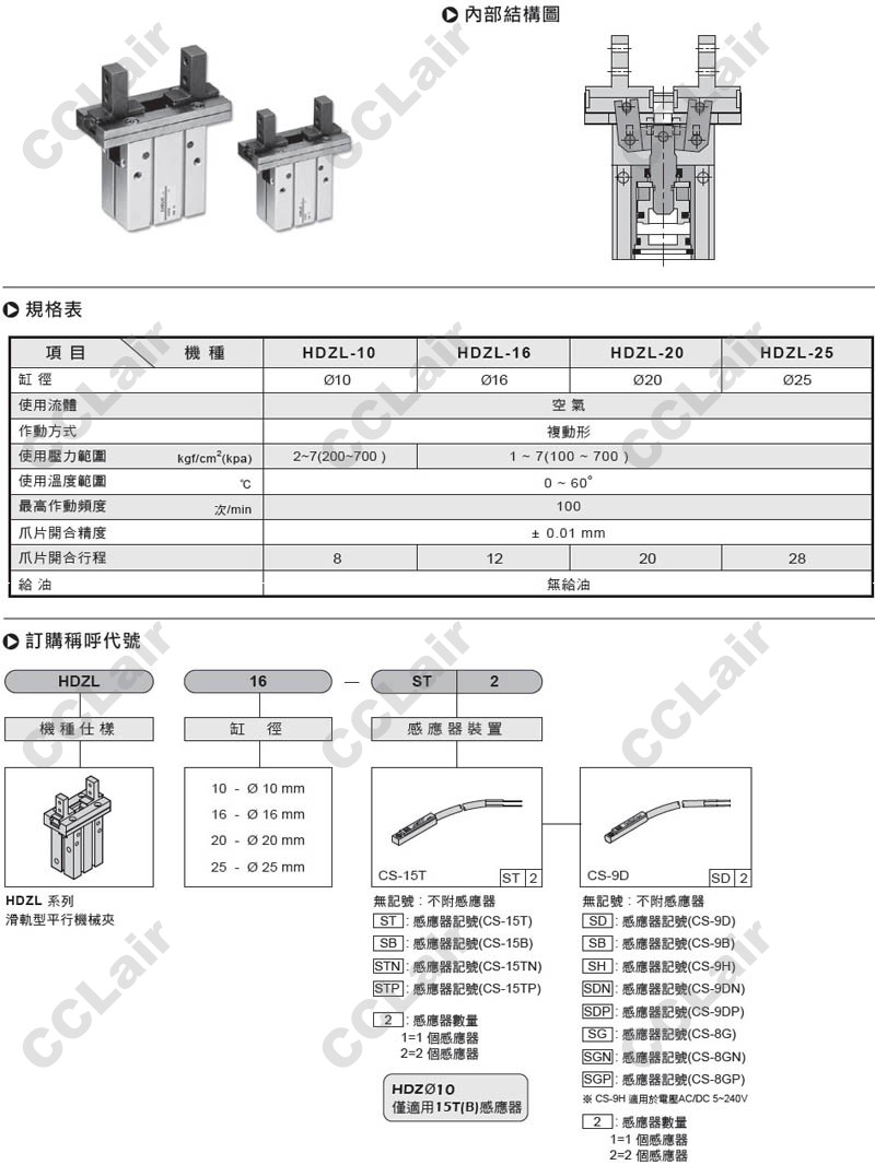 HDZL-10-ST2,HDZL-16-ST2,HDZL-20-ST2,HDZL-25-ST2,滑軌型平行機(jī)械夾