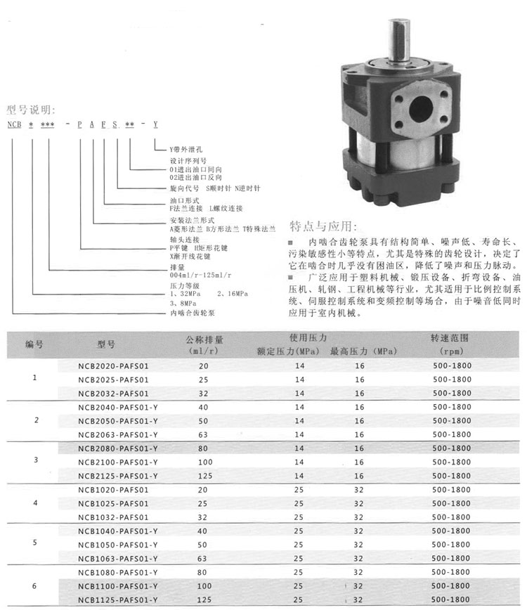 NCB2020-PAFS01,NCB1025-PAFS01,NCB2032-PAFS01,NCB1040-PAFS01-Y,齒輪泵