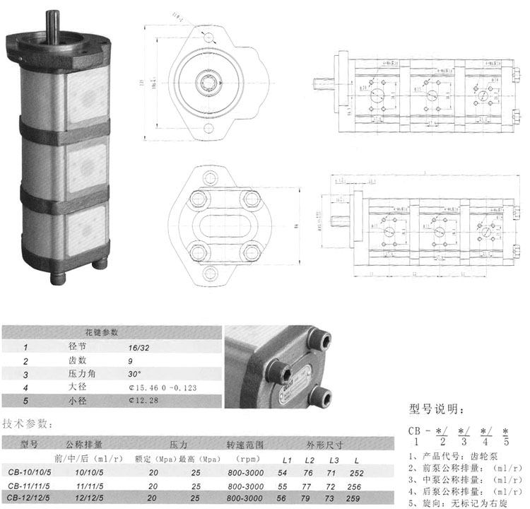 詳細(xì)信息 CB-10/10/5,CB-11/11/5,CB-12/12/5,三聯(lián)齒輪泵